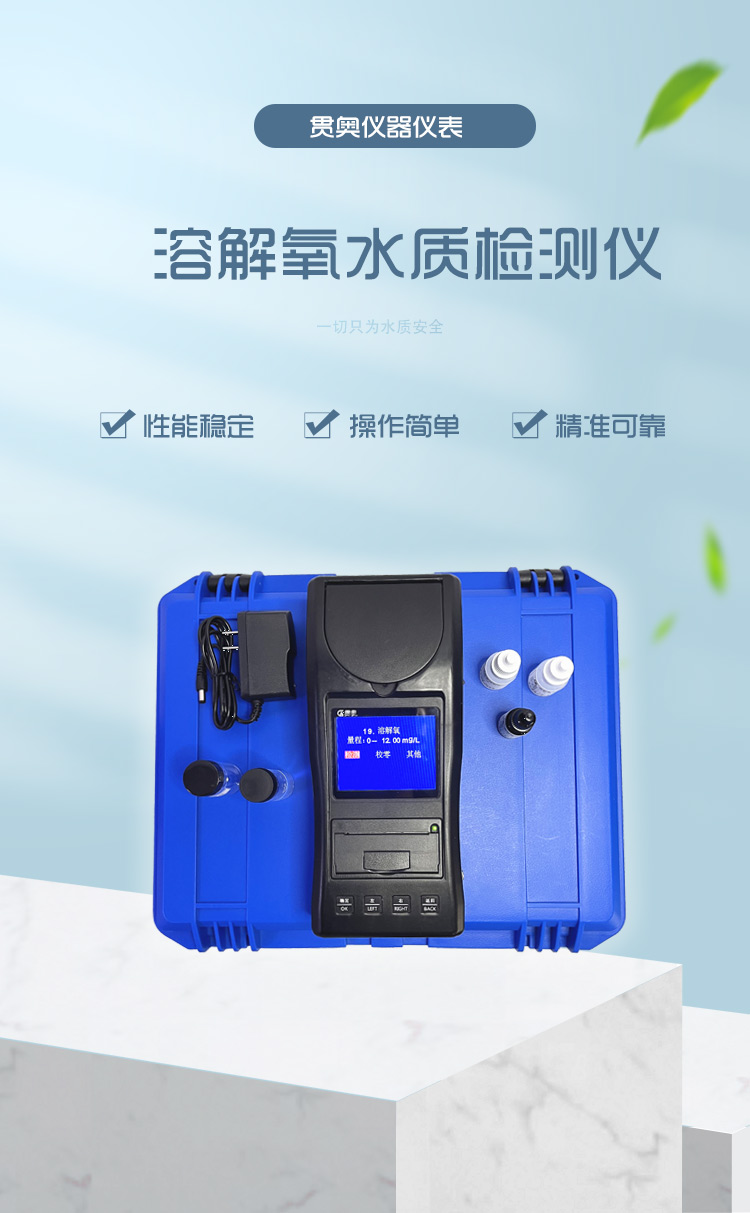 溶解氧水质检测仪主要用于饮用水中的溶解氧参数的测定。本仪器可广泛用于水厂、养殖、环保等行业,是常用的户外及实验室水质检测仪器。